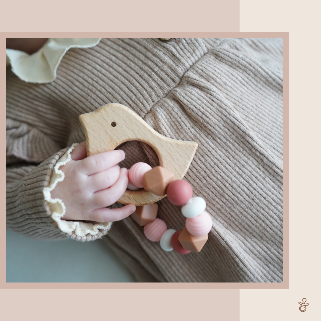 Een bijtfiguur verlicht de pijn bij doorkomende tandjes. Leg het bijtfiguur eventueel in de koelkast zodat de silicone kralen een verkoelend effect kunnen geven.