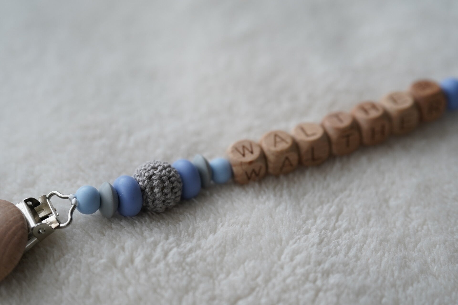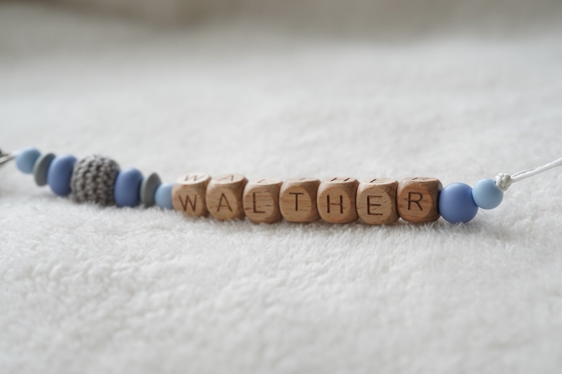 maximaal 7 letters, afhankelijk van de lengte van de naam kunnen de decoratieve kralen weggelaten worden om aan de veiligheidseisen te voldoen.
